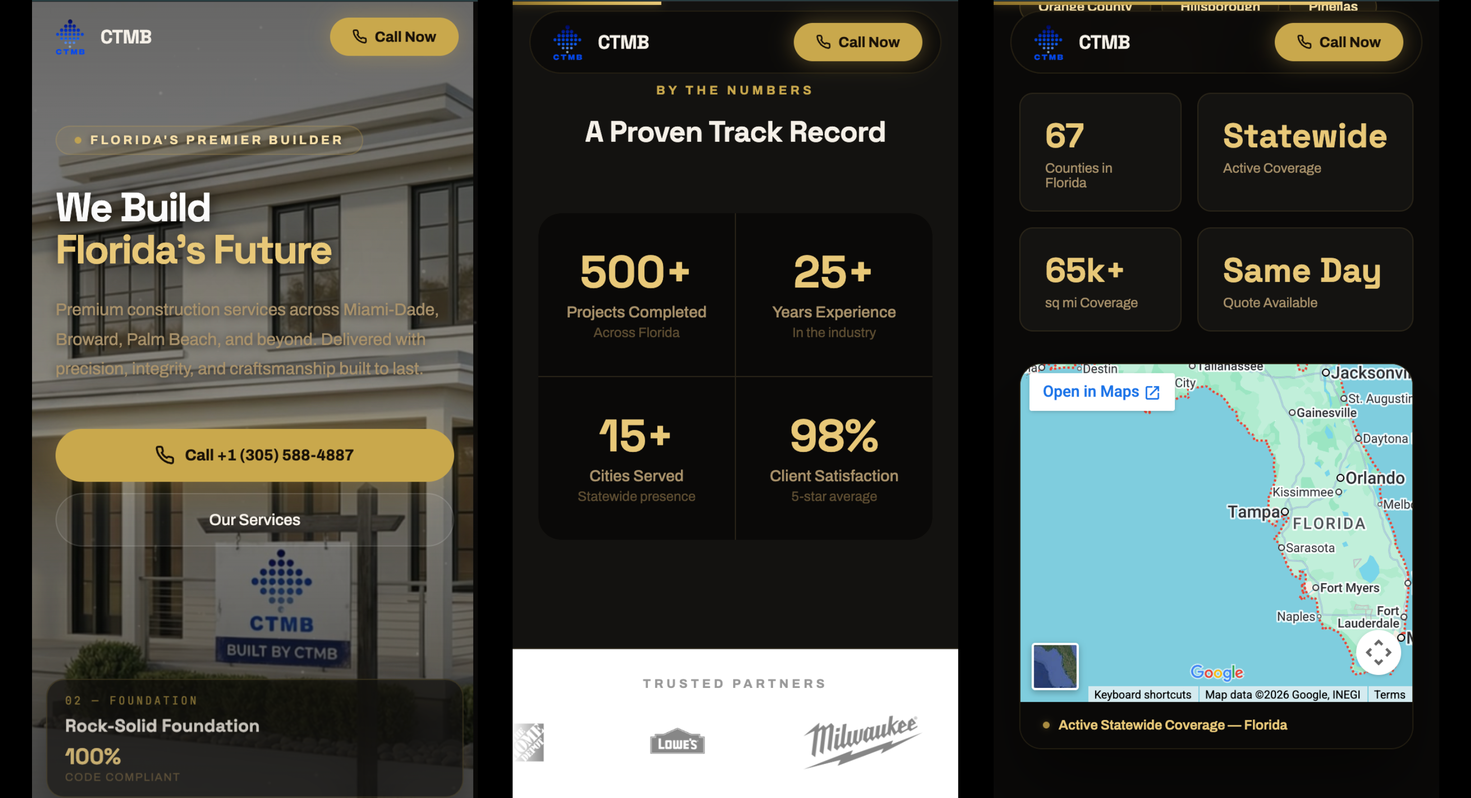 See how we transformed CTMB Construction's web presence from a basic template into a premium, high-converting experience.